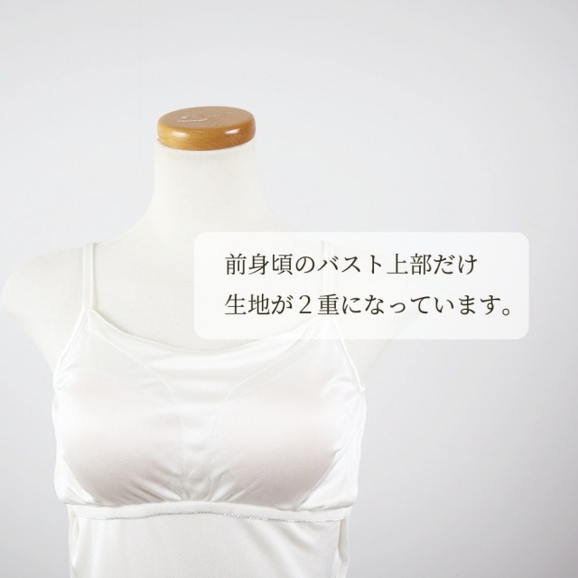 ※お写真の通り、カップ付きキャミソールのカップは、ブラジャーのように胸をしっかりホールドするものではありません。ホールド感ではなく、胸元に当ててカバーする優しいフィット感をご体感いただければ幸いです。