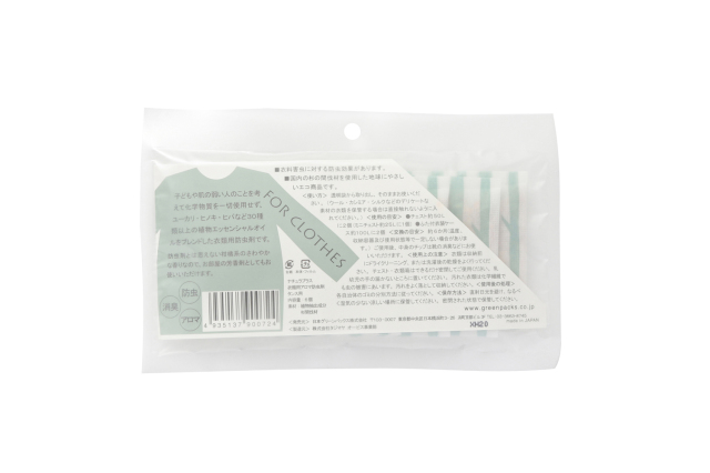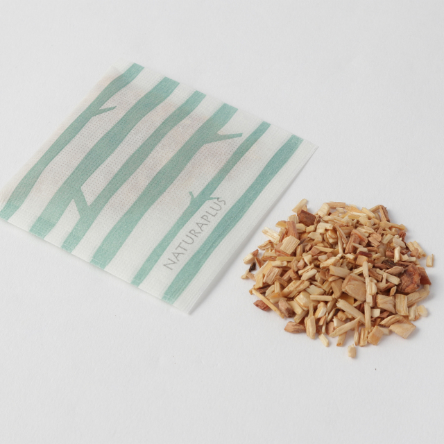 ナチュラプラスアロマ防虫剤は天然アロマを国内の杉の間伐材にしみ込ませたナチュラルでエコなアロマ防虫剤です。化学成分、殺虫成分を一切使用せず、虫の嫌がる忌避成分として、オレンジ、ヒノキ、ヒバ、ユーカリなど植物成分を30種類以上ブレンドしています。香りは、主に柑橘系の爽やかで甘い香り。洋服への移り香が心地良く感じるほどです。化学的な防虫剤の香りに頭が痛くなる、と言う方も、ナチュラプラスの防虫剤は天然由来成分のみですので安心してお使いいただけます。