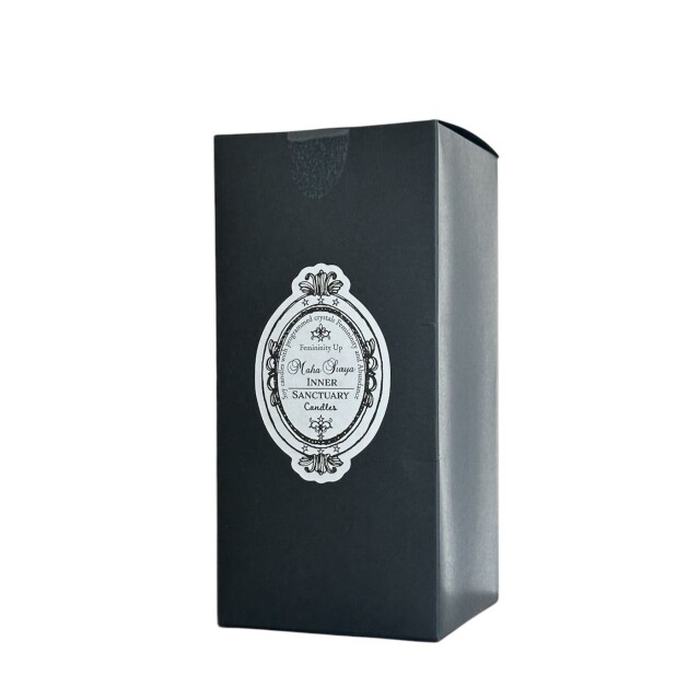 INNER SANCTUARY CANDLE by Maha Suryaはくらしのたのしみにでしか手に入りません。配合されている精油は、Maha Suryaオリジナルの調合となり、女性性を意識した精油をふんだんに配合しています。シックなブラックのオリジナルの箱入りの為、ギフトにもおすすめです。