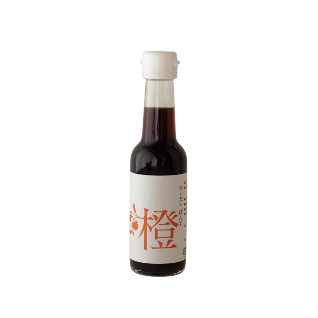 ポン酢に使う柑橘は、柚子、かぼす、すだちが広く知られていますが、実は橙(だいだい)が最も多く使われているのだそう。橙は他の柑橘に比べて、香りが上品で、酸味が穏やか。お出汁や調味料と非常に調和するため、日本のポン酢の原型と言える存在なのです。ミツル醬油のだいだいぽんずは、そんな橙の果汁を30%以上使用し、国産の上質な調味料(醤油、粗糖、純米酢)を丁寧に合わせ、仕上げにたっぷりの昆布と鰹節が漬け込まれた1本です。橙ならではの角のない、ふくらみのある酸味が、醤油の深い旨味、粗糖のまろやかな甘み、米酢の酸味、味わいのあるお出汁が絶妙に溶け合います。